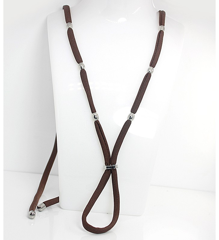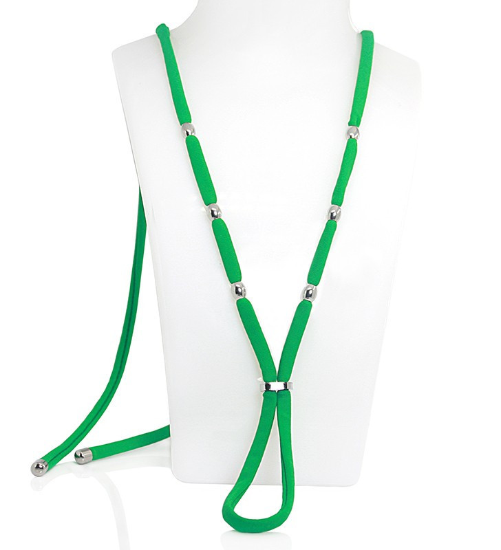 Originální náhrdelník na podprsenku, který plně nahradí podprsenková ramínka, nebo oživí Váš top. Látkový kord je zdoben korálky z leštěné nerezové oceli. Veškeré aplikované komponenty lze libovolně posouvat dle potřeby.