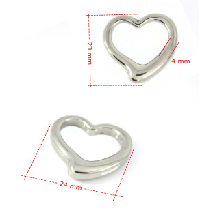 Ocelové komponenty ve tvaru srdce, lesklého vzhledu, v originální barvě, nebo vakuově zlacené v České republice. Bližší informace ohledně PVD povlakování naleznete na našem blogu nebo nápovědě FAQ.
