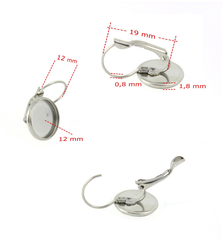 Mechanické náušnicové háčky z chirurgické oceli 316L, s lůžkem z nerezové oceli.