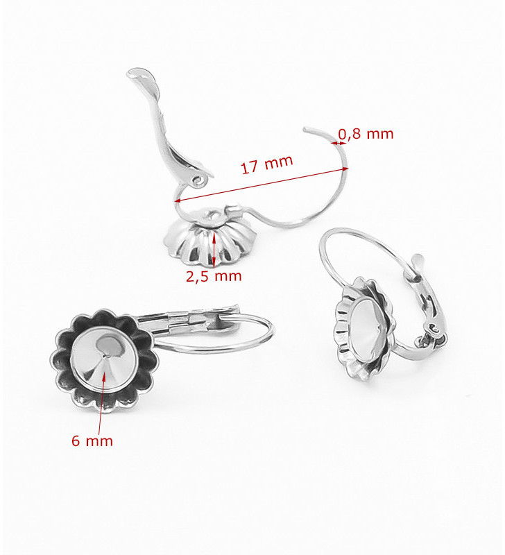 Náušnice na mechanické zapínání z chirurgické oceli 316L a rivoli lůžkem 6mm.