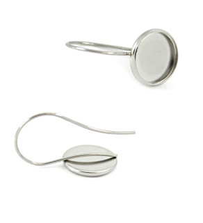 Náušnicové háčky z chirurgické oceli 316L s lůžkem o průměru cca 12mm, o celkové délce 30mm. Komponenty jsou vyrobené v České republice, cena uvedena za 1Ks. K háčkům doporučujme použití náušnicových zarážek.