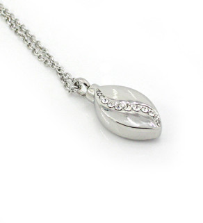 Ocelový přívěsek s kamínky o rozměru 27x15 mm a celkové délce 33mm, se šroubovacím uzávěrem. Přívěsek je dodáván společně s řetízkem z chirurgické oceli o celkové délce +-50cm.
