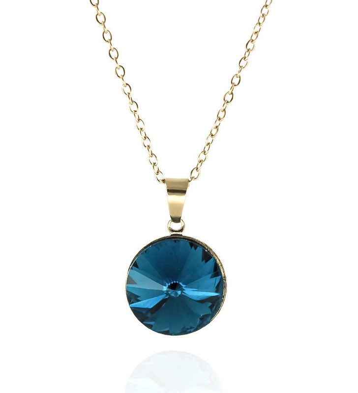 Šperk doplněný krásným krystalem v modré nebo zelené.