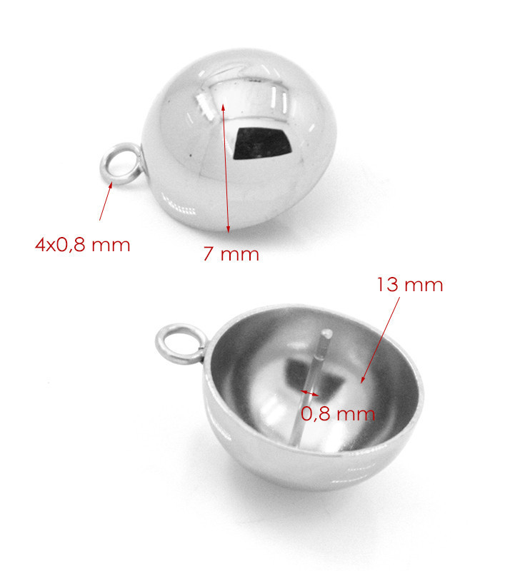 Leštěné přívěsky z nerezové oceli s půlkulatými lůžky 13 a 15mm. V originální barvě, nebo vakuově zlacené v České republice. Bližší informace ohledně PVD povlakování naleznete na našem blogu nebo nápovědě FAQ. Cena uvedena za 1 ks.