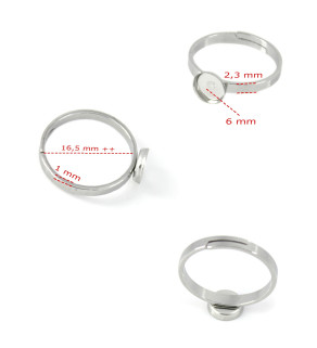 Základ pro prstýnek o vnitřním průměru cca 17mm s možnosti nastavení velikosti, s 6mm lůžkem. Prstýnek je vyroben v české republice a cena je uvedena za 1Ks.