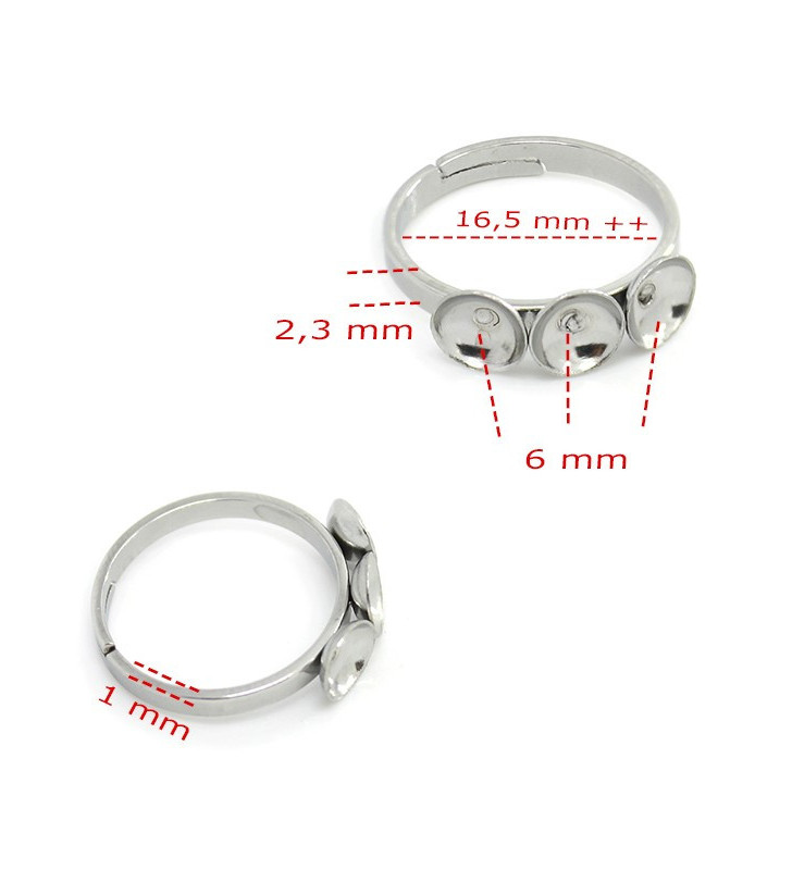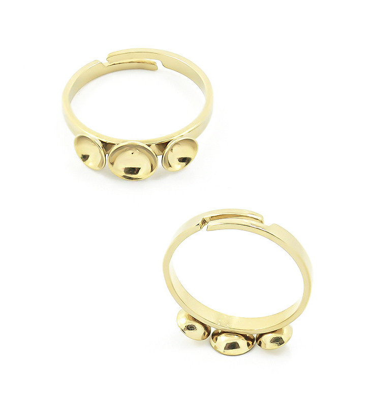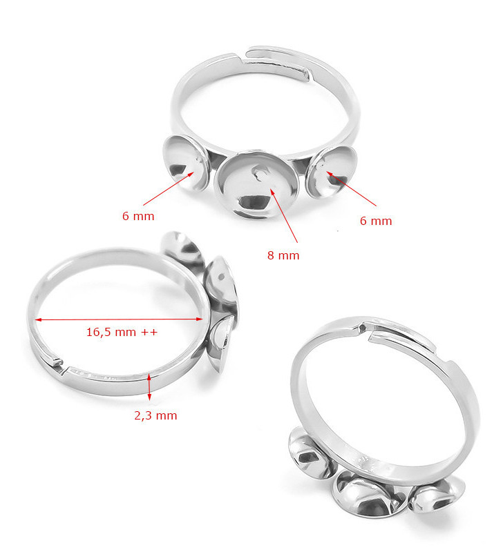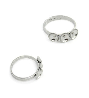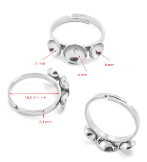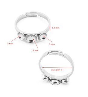Základ pro prstýnek o vnitřním průměru cca 17mm s možnosti nastavení velikosti, se třemi lůžky. Prstýnek je vyroben v české republice a cena je uvedena za 1Ks.