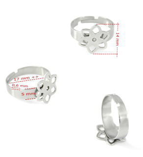 Základ pro prstýnek o vnitřním průměru cca 17mm s možnosti nastavení velikosti, s ploškou kytka.