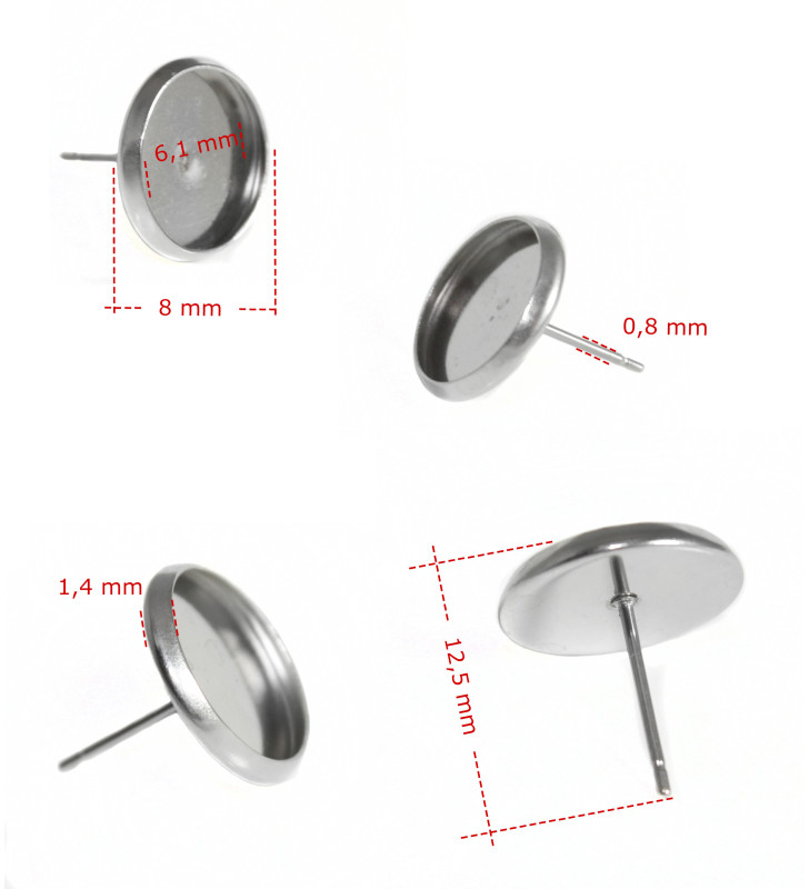 Náušnicové komponenty s lůžkem a plochým spodkem o vnitřním průměru 8-12mm. Strojně leštěné lesklého vzhledu, v originální barvě, nebo vakuově zlacené v České republice. Bližší informace ohledně PVD povlakování naleznete na našem blogu nebo nápovědě FAQ.
