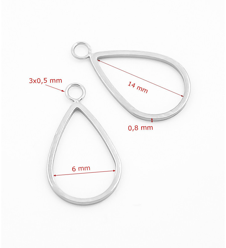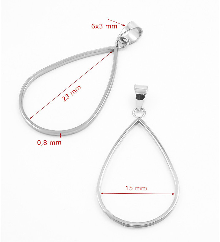 Ocelový rámeček přívěsek kapka. Přívěsky jsou vyrobeny v ČR, na menší velikost je navařen kroužek a na větší je navařena kromě kroužku také šlupna. V případě zájmu o jinou kombinaci výroby nás neváhejte kontaktovat.
