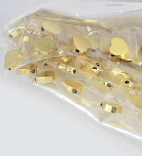 Leštěné korálky zrcadlového lesku a vysoké kvality, s povrchovou úpravou zlaté barvy. Baleny po jednotlivých kusech.