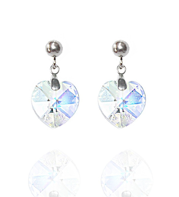 Náušnice srdce z chirurgické oceli s krystaly Preciosa.