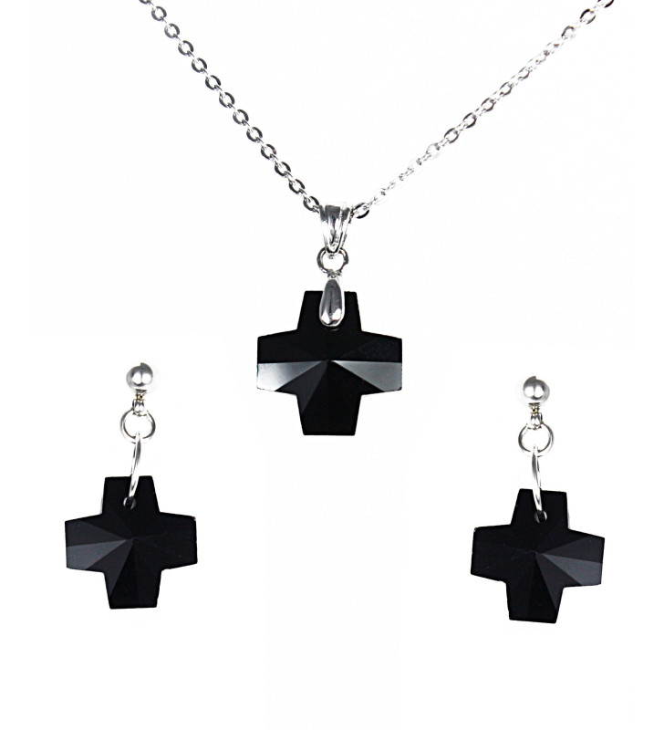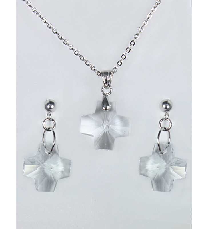 Souprava z chirurgické oceli a krystalů obsahuje náušnice a přívěsek.