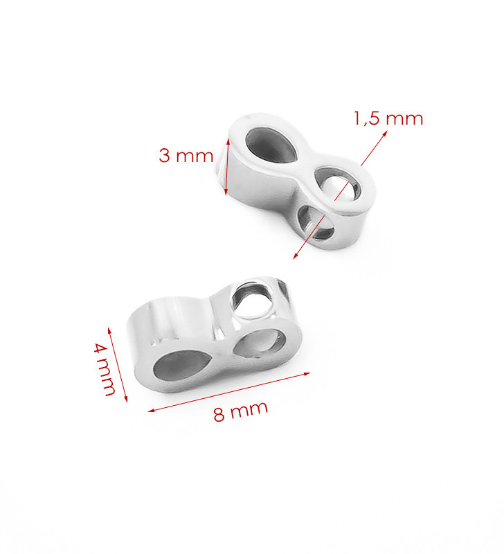 Ocelový přívěsek ve tvaru osmičky. Vysoce leštěný, v originální barvě, nebo vakuově zlacený v České republice. Bližší informace ohledně PVD povlakování naleznete na našem blogu nebo nápovědě FAQ. Cena uvedena za 1 ks