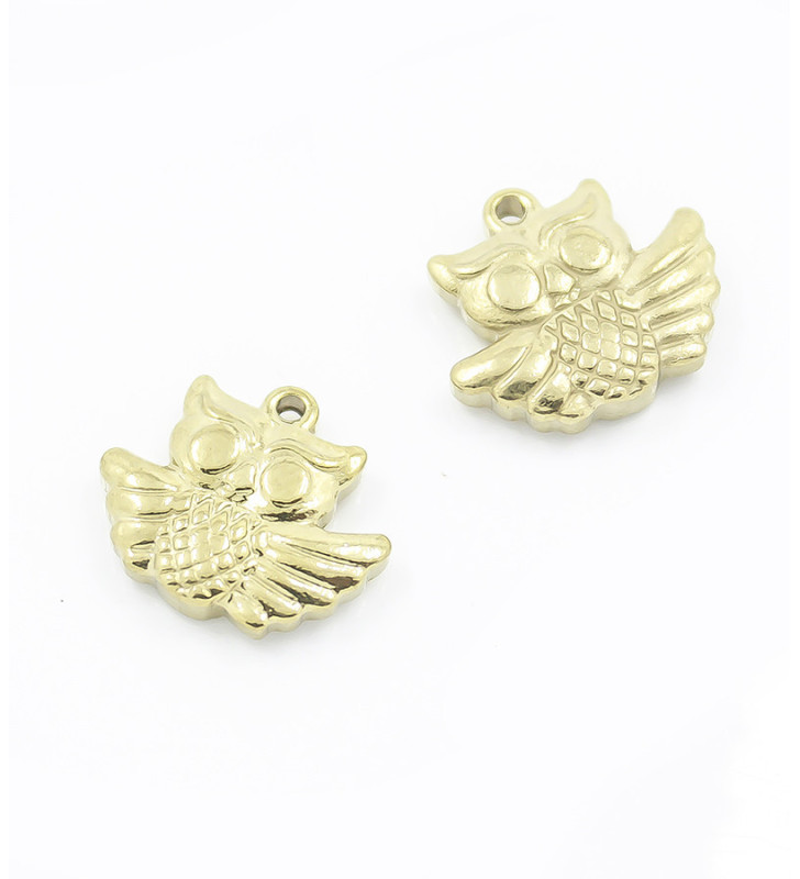 Ocelový přívěsek ve tvaru sovy oboustranný. Strojně leštěné lesklého vzhledu, v originální barvě, nebo vakuově zlacené v České republice. Bližší informace ohledně PVD povlakování naleznete na našem blogu nebo nápovědě FAQ. Cena uvedena za 1 ks.