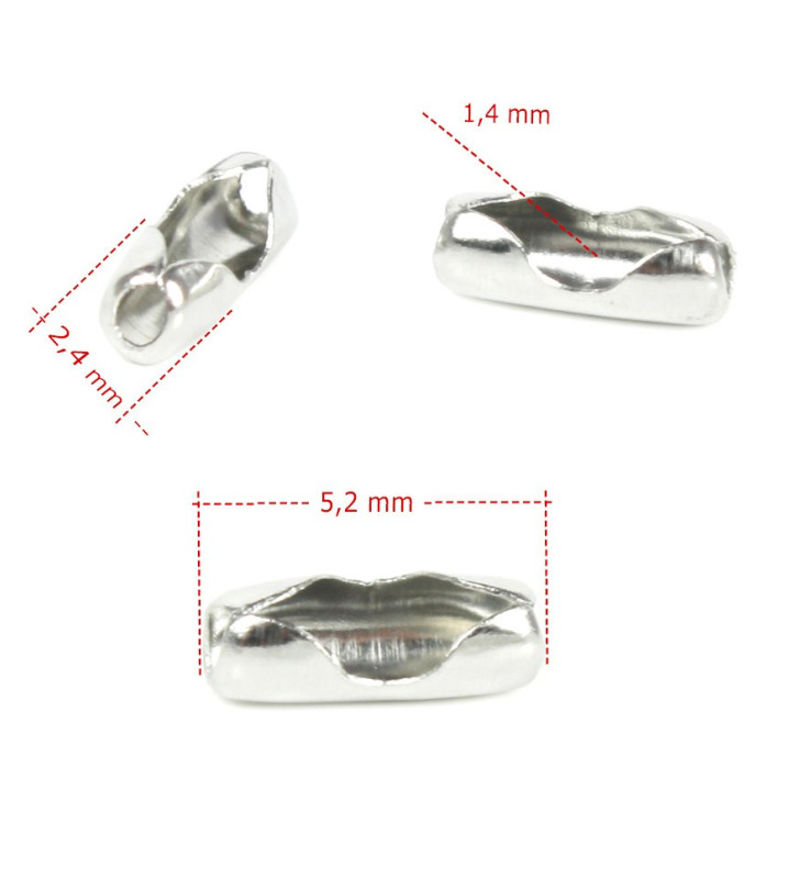 Stainless Steel 316L Chain Connector for ball chain, with inner size from 1 to 2,5mm. Polished, in the original color, or vacuum coated in the Czech Republic. More information about PVD coating can be found on our blog or FAQ.