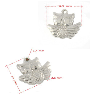 Stainless Steel Owl Pendants. Polished, in the original color, or vacuum coated in the Czech Republic. More information about PVD coating can be found on our blog or FAQ. Price for 1Pc.