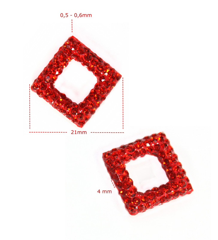 Rhombus pendant component with crystals on the both sides.