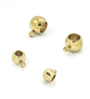 Stainless Steel bead rondells with loop. Polished, in the original color, or vacuum coated in the Czech Republic. More information about PVD coating can be found on our blog or FAQ. Price for 1Pc.