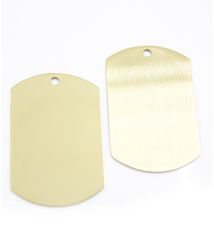 Tag Rectangle Pendant, front side hand polished size 42mm and both polished side 40mm, in the original color, or vacuum gold color coated in the Czech Republic. More information about PVD coating can be found on our blog or FAQ. Price for 1Pc.